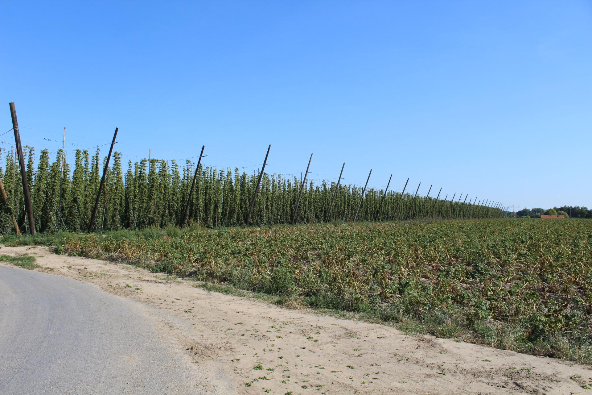 Op vraag van Joris Cambie, enige bio hoppeboer van België, werden we uitgenodigd om het oogsten van de hop bij te wonen.